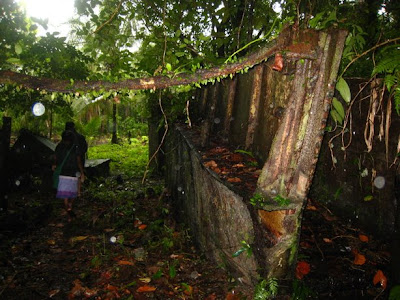 Our walk took us into the next village along the remnants of a sunken concrete road, that was also left over from the war. We passed some really pretty gardens and tropical flowers and soon noticed that many of them contained heavy-duty mounted guns that had been hoofed into people gardens and incorporated into the wild orchid displays...it was quite a sight.
