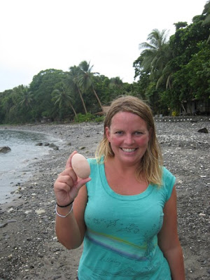 When we arrived back at our hotel Clairy noticed that the boy who had come with us was clutching the megapode egg of the day in his sweaty little palm. She quickly asked our guide if she could have a photo with it too. The boy didn't seem to understand and looked rather horrified that Clairy might have been pinching his egg, but was all smiles once it was returned after the piccy.